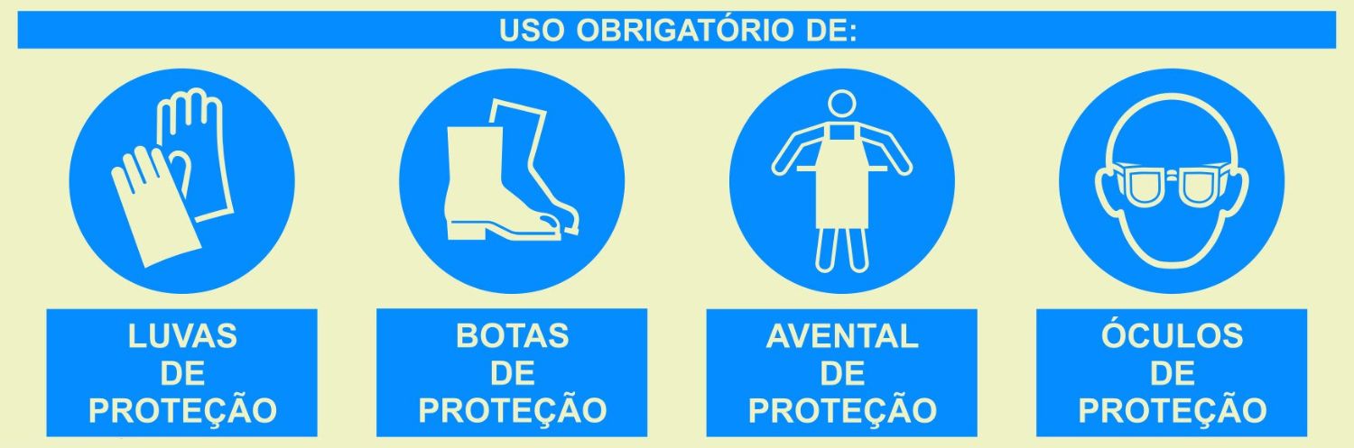 DESCRIÇÃO:- Sinal composto triplo, uso obrigatório de luvas de proteção, botas de proteção e óculos de proteção;MATERIAL:- PVC opaco;- Vinil autocolante opaco;- Alumínio plastificado;- PVC fotoluminescente;TIPO FIXAÇÃO:- Paralelo à parede;- Suspenso no teto;DIMENSÕES:- 600x300;- 900x400;MARCA: FIELD..